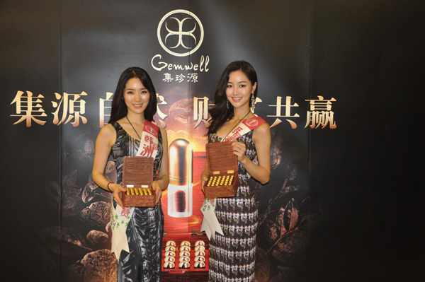 “集珍源”作為本次活動的贊助商,全系列產(chǎn)品逐一亮相,讓全場嘉賓親身感受“天然純凈、營養(yǎng)純正、吸收純粹、方便快捷”的珍稀滋補品的魅麗,美麗的韓國小姐與現(xiàn)場嘉賓在現(xiàn)場品飲了集珍源珍稀滋補精華后,對集珍源產(chǎn)品紛紛贊嘆不已。作為“集珍源”上海代理商,“圣美(上海)商貿(mào)有限公司”銷售總監(jiān)吳昉先生也蒞臨活動現(xiàn)場,為嘉賓講解“集珍源”的獨到之處,并為來賓開獎,現(xiàn)場送出 “集珍源”豐厚大禮!