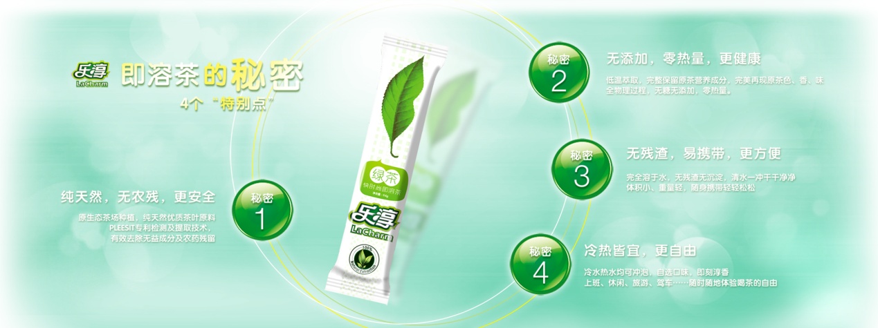 據(jù)悉,正源華茶(中國)有限公司在華南地區(qū)投資2億元,創(chuàng)建正源華茶即溶茶精華生產(chǎn)基地、生態(tài)茶園、生物工程產(chǎn)業(yè)園等,是全球領(lǐng)先的即溶茶精華研發(fā)生產(chǎn)供應(yīng)商。樂淳即溶茶精華是一種能迅速溶解的固體飲料茶,它以成品茶、半成品茶或鮮葉為原料,通過正源華茶自由知識產(chǎn)權(quán)的“植物有效成分高效分離純化技術(shù)集成系統(tǒng)”(PLEESIT),使用純物理方法的納米生物萃取技術(shù)提取成一種即溶入水而無茶渣的的新型固體飲料,與傳統(tǒng)原茶、袋裝茶相比,既很好地保留原有品種茶葉的色、香、味,并且沖飲攜帶更為方便。